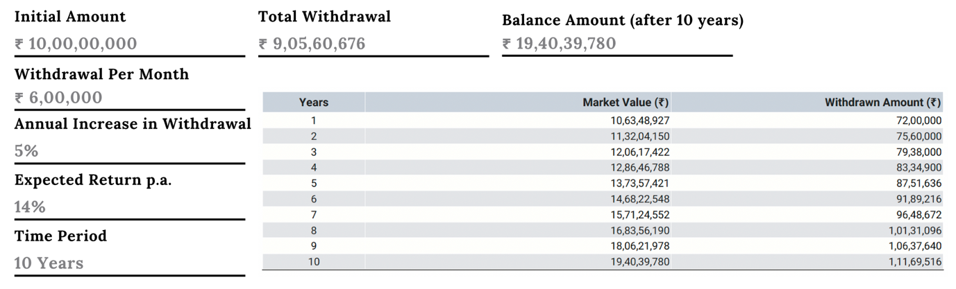 Capital Preservation and Growth: A major chunk of the corpus remains invested, allowing the investment to grow and compound.