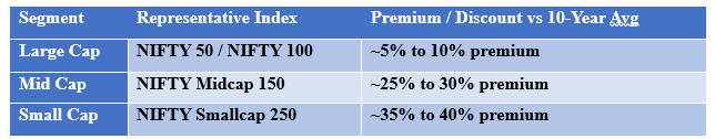 The share of large-cap contribution has declined and is now more evenly distributed across mid and small caps. This shift is also reflected in relative performance, with SMID segments outperforming large caps in recent years.